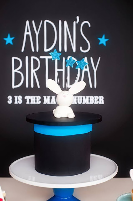 As told by Studio Cake "We celebrated my son’s third birthday in May of this year and decided on a Magic theme with the colours dark teal, red black and white for a retro, fun feel
