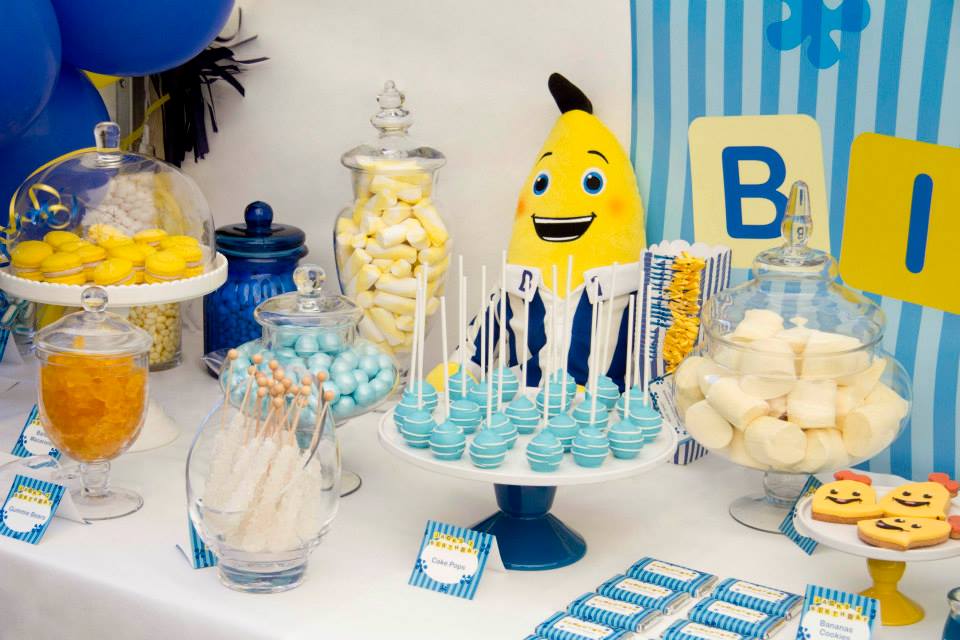 Rock Paper Sugar Events created a Bananas in Pyjamas inspired second birthday celebration with a dessert and candy buffet, beverage station and an ice-cream banana sundae bar. Concept and Styling: Rock Paper Sugar Events Photography: Ella Gamlen : Photographer Printables: Ham&Pea design&paperie Birthday Cake: Sugar & Spice Cakes Cake Pops: Sugar Pop Bakery Macarons: 4 Little Macarons Garland:Blush loves mint Biscuits: The Delicious Biscuit Balloon Art: Zig Zag Balloons Rock Candy crystal sticks Little Big Comapny