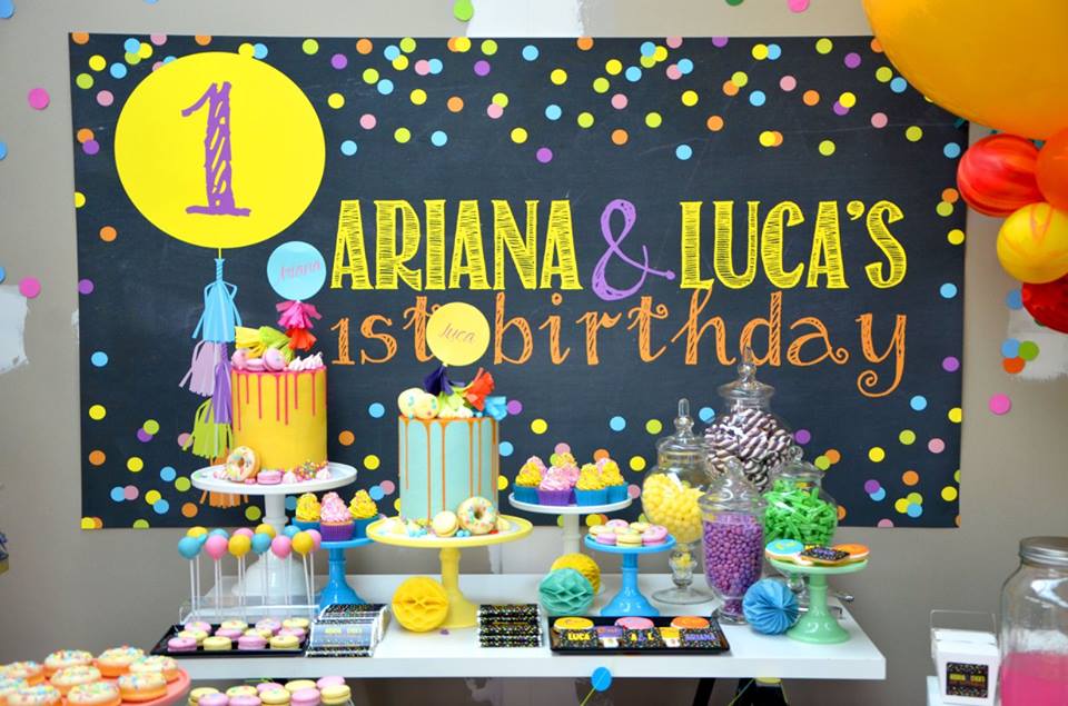 The colour exploded against the chalkbaord effect on the backdrop by inked designs for special events who also created the invitations and the concept flowed to the cookies by the incredible Dessert Menu, Please